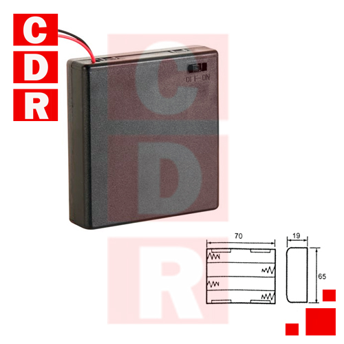 PORTAPILA 4 AA CON TAPA DESLIZABLE Y CHICOTE CON INTERRUPTOR