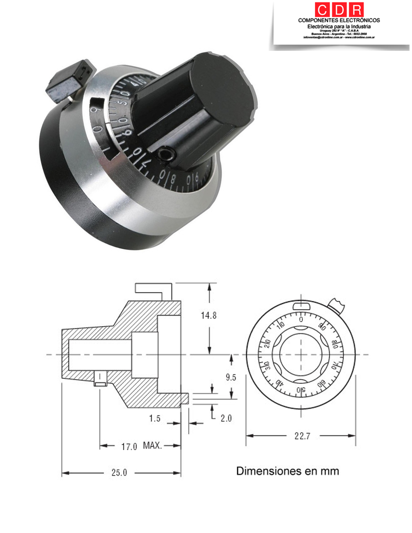 DIAL CUENTA VUELTAS 0-15VTAS DIAM.22MM METALICO H506